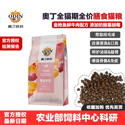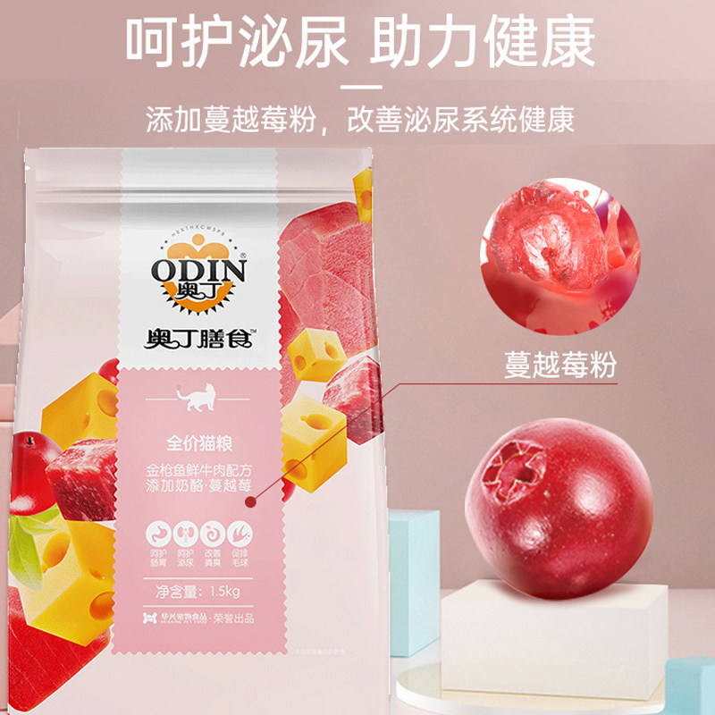 奥丁膳食猫粮金枪鱼鲜牛肉配方添加奶酪蔓越莓去毛球美毛低盐全价
