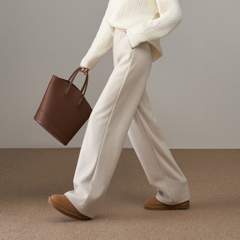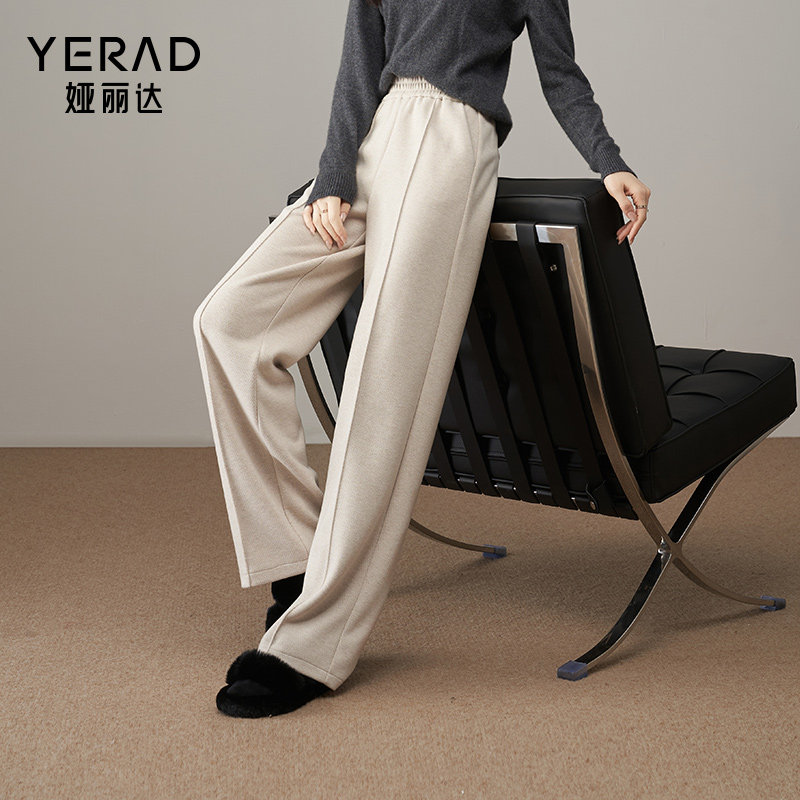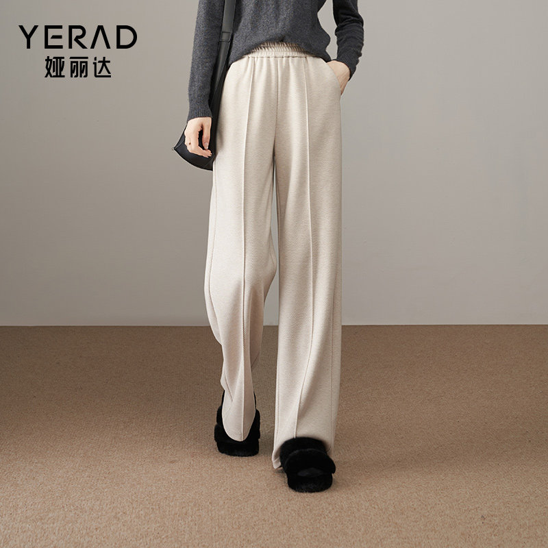 娅丽达高腰加厚直筒裤女冬季休闲裤2025新款弹力裤子米白色阔腿裤