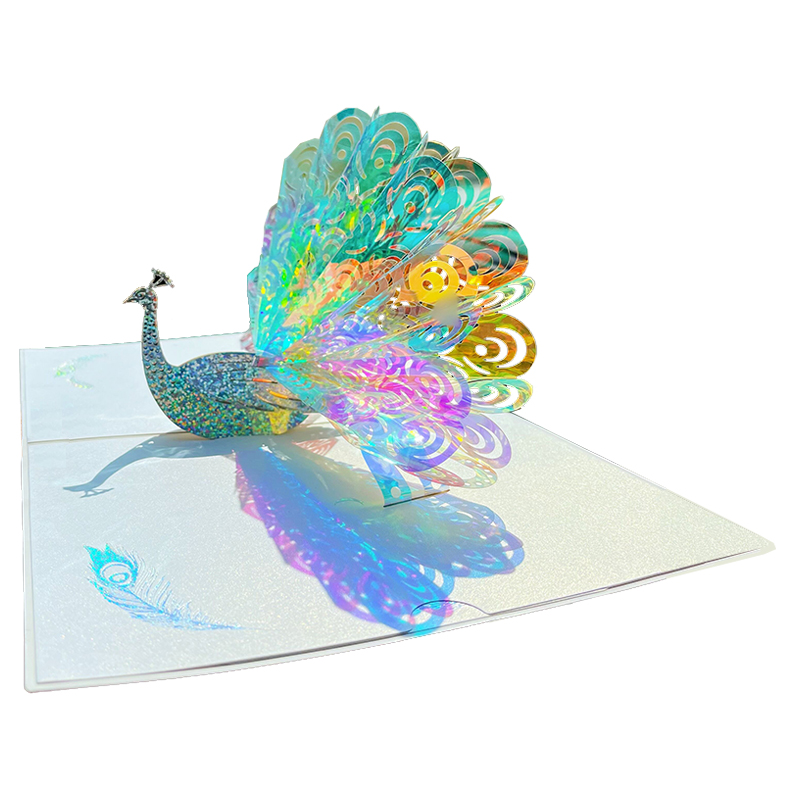 闪闪发光孔雀3D立体贺卡梦幻创意生日节日通用祝福卡片感恩节ins