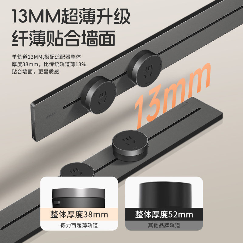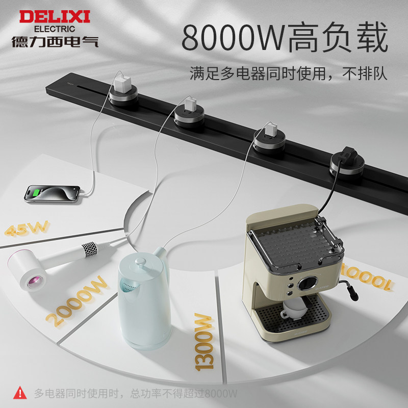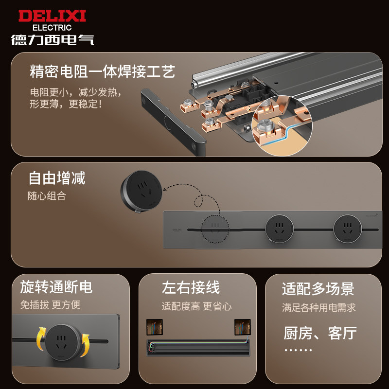 德力西官方旗舰店轨道插座黑色滑轨插排超薄移动插座家用明装厨房