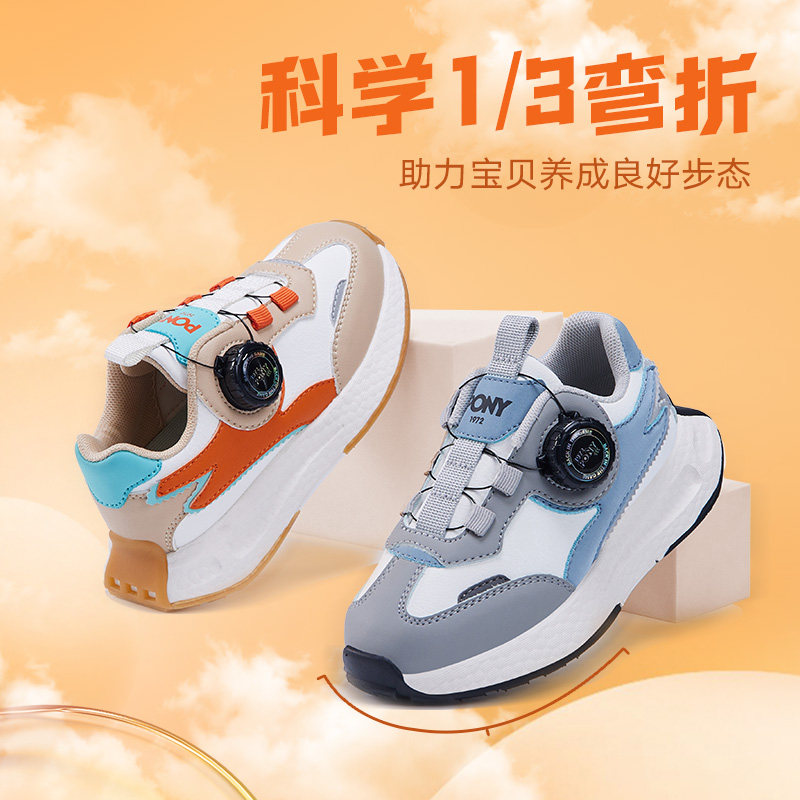 pony儿童旋钮运动鞋男童女童轻便跑步鞋小学生秋款童鞋防踢缓震