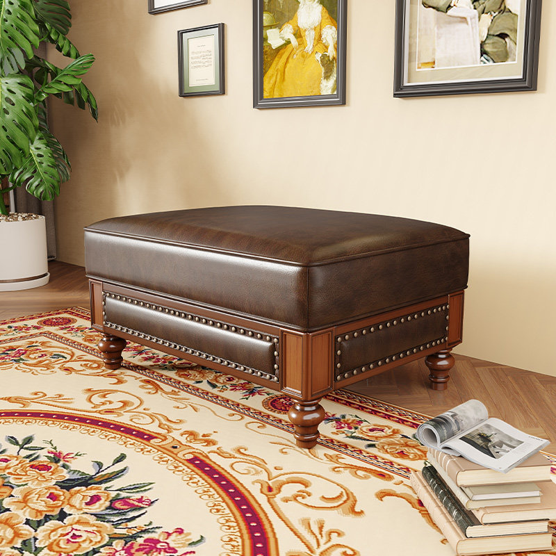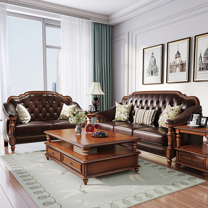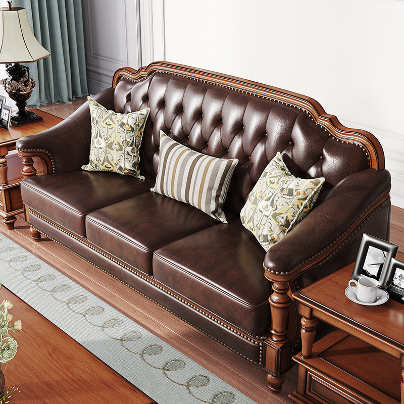 美式复古实木真皮沙发头层牛皮123组合简美客厅别墅家具四人位