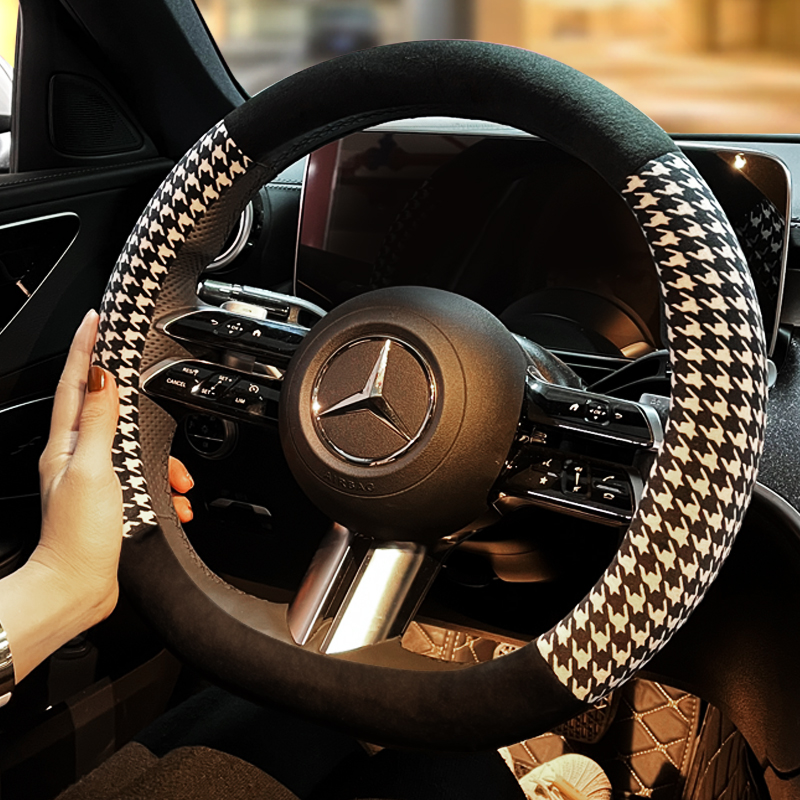 汽车方向盘套冬季毛绒防滑可爱卡通女比亚迪奔驰四季通用女士把套