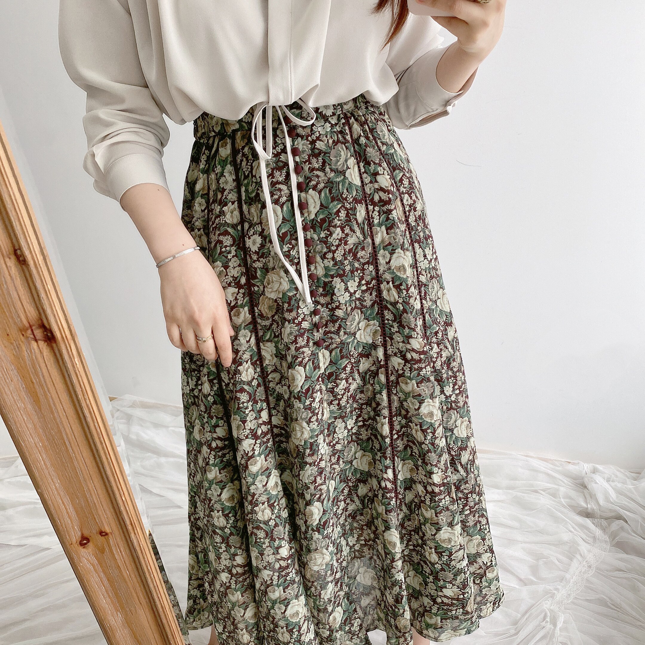 美到窒息!扣+杂志合作款 法式优雅Vintage感印花 撩人鱼尾半身裙
