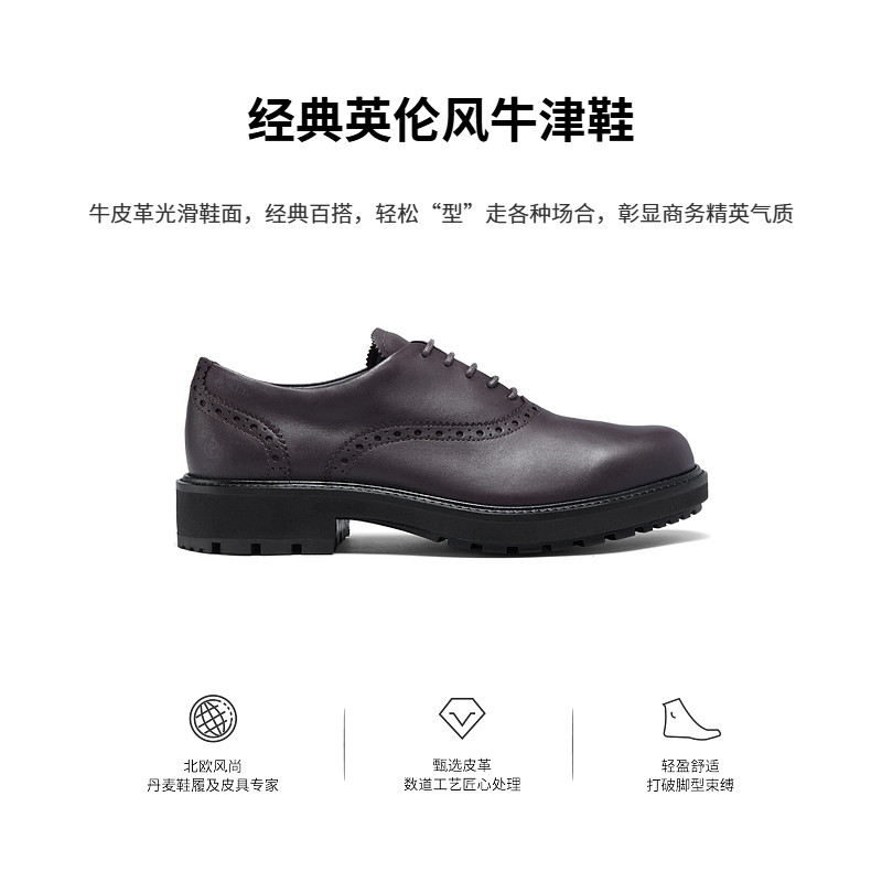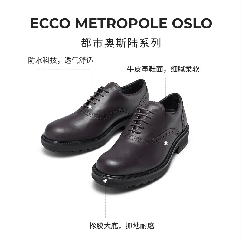 ECCO爱步布洛克皮鞋男 春夏防水透气增高牛津鞋 都市奥斯陆550284
