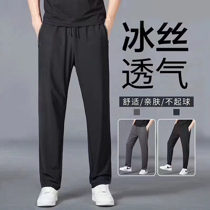男士夏季冰丝薄款休闲裤男直筒宽松弹力运动裤青年速干裤束脚长裤