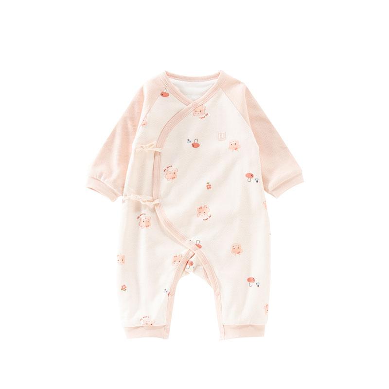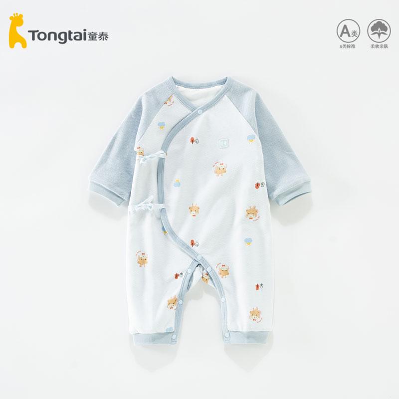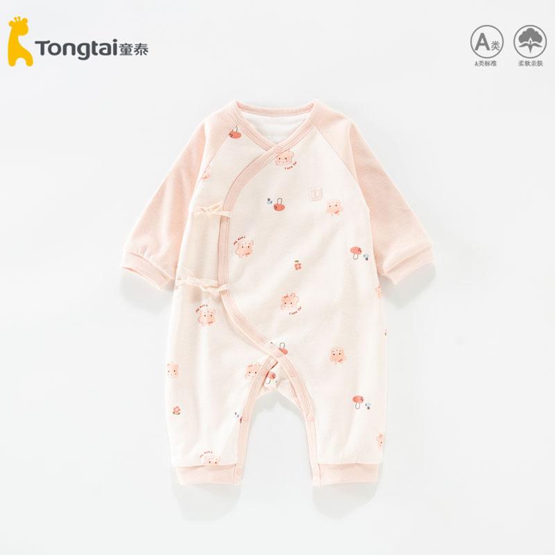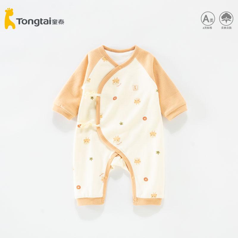 童泰新生婴儿春秋双层连体衣宝宝蝴蝶哈衣夹里纯棉爬服0-6个月a类