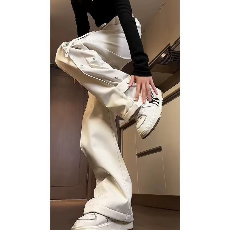 排扣机能风微喇冲锋裤男款春秋美式高街潮牌宽松直筒休闲工装裤子