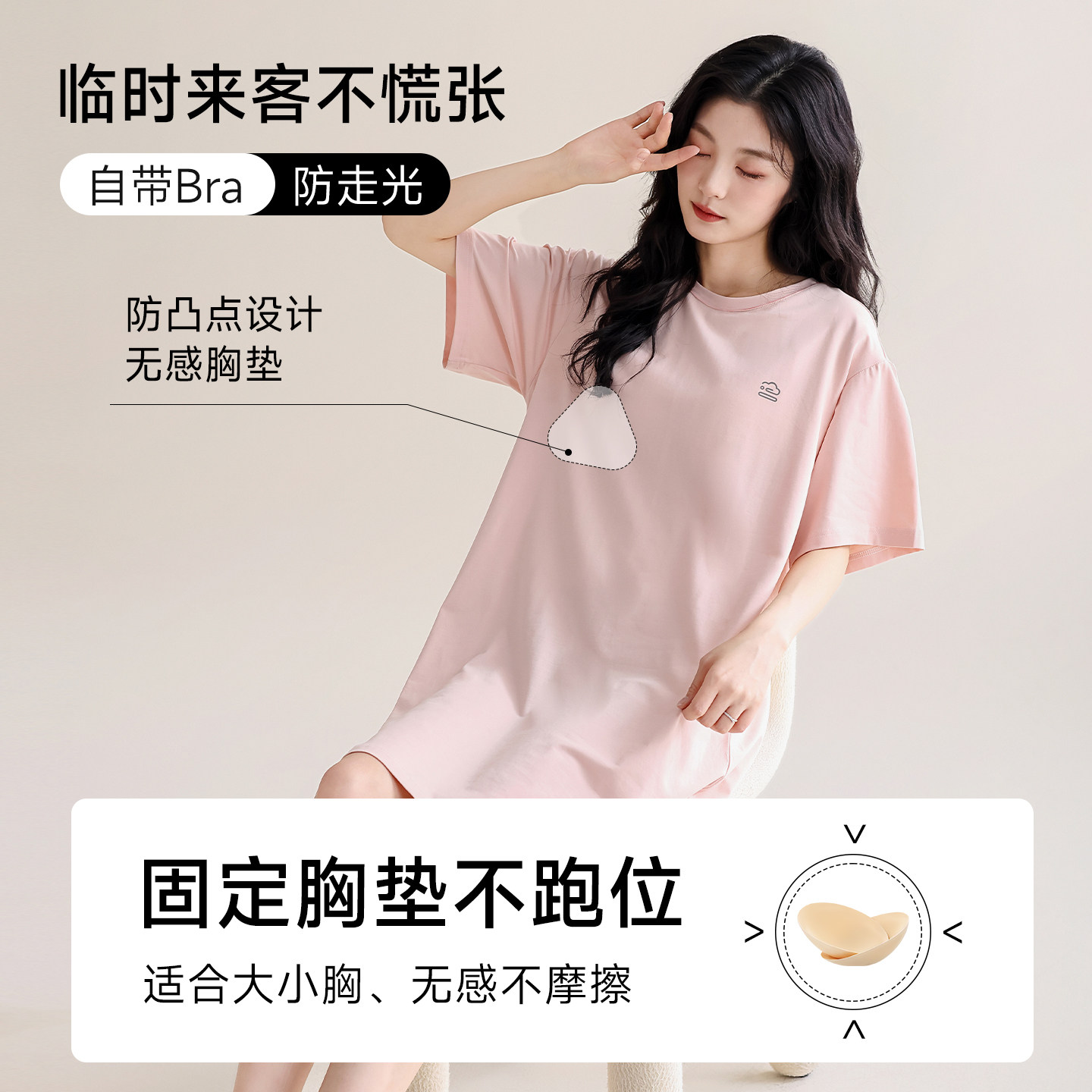 猫人莫代尔夏季甜美带胸垫睡裙