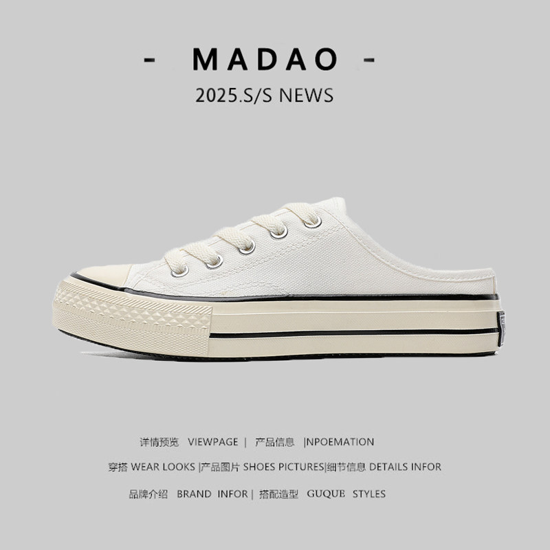 外贸男鞋夏季无后跟半拖帆布鞋男款百搭男生一脚蹬懒人包头半拖鞋