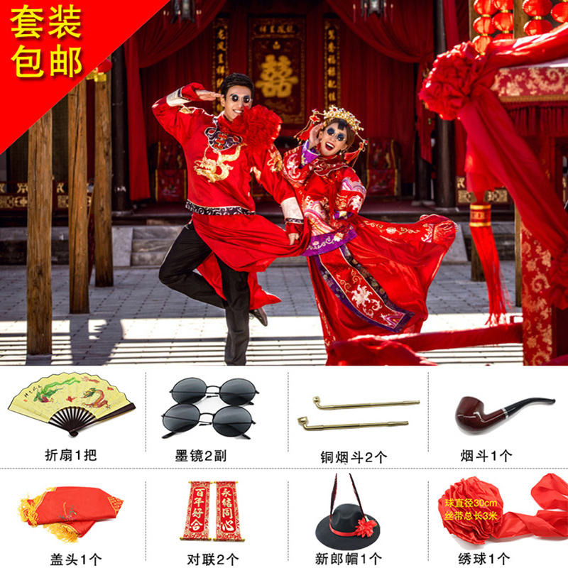 影楼摄影古装道具主题婚纱照拍照中国风扇子绣球烟斗墨镜帽子摆件