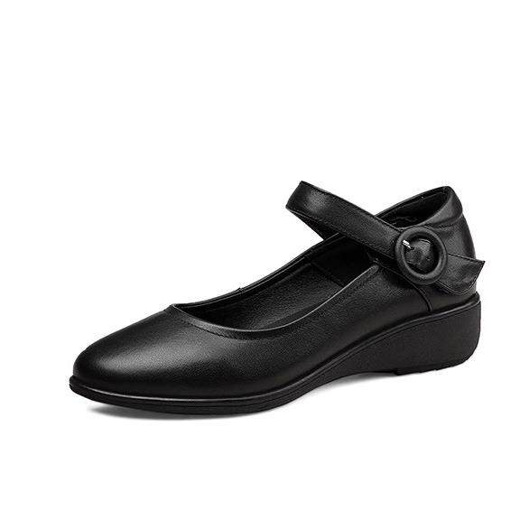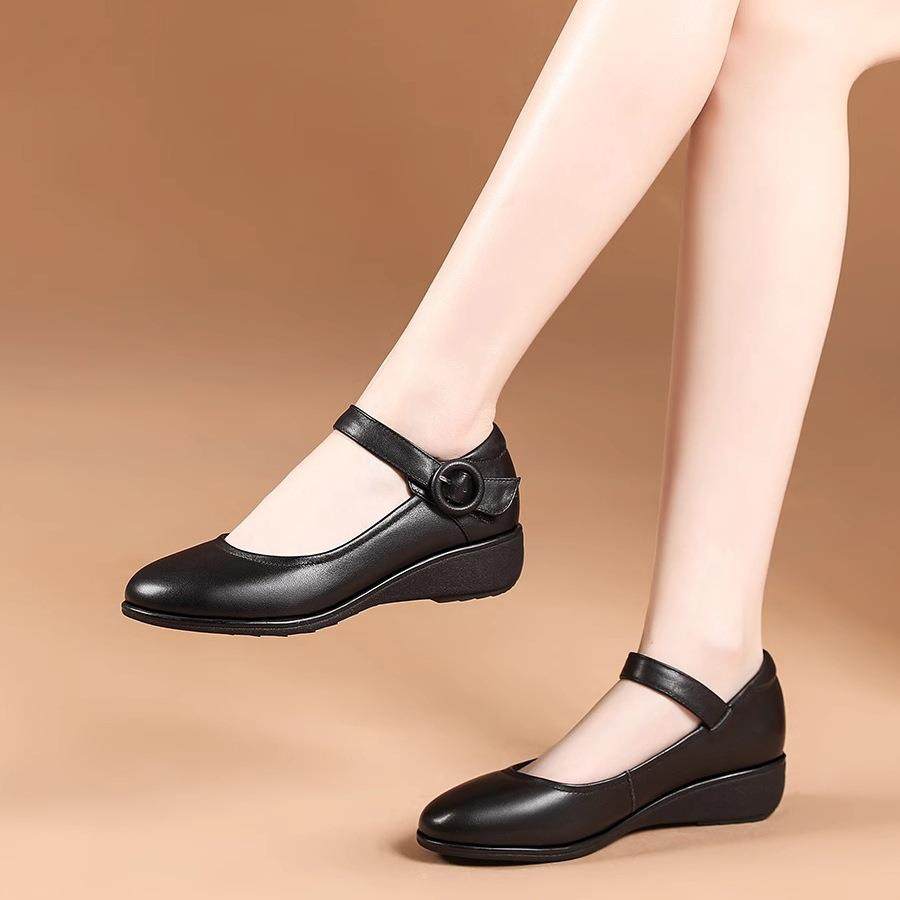 坡跟玛丽珍小皮鞋春秋新款圆头低跟一字带浅口单鞋舒适妈妈鞋