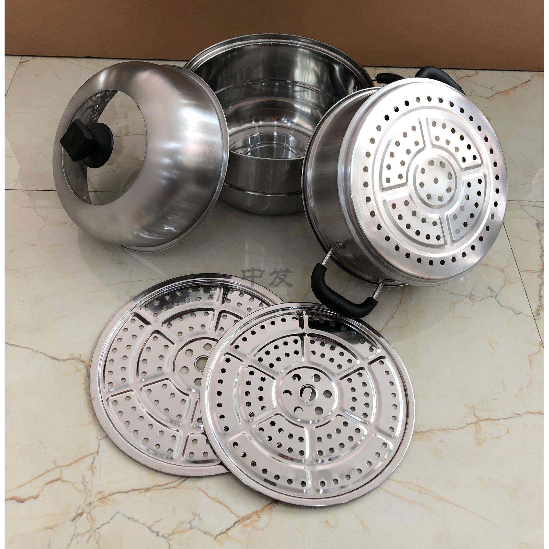不锈钢蒸锅真实惠带磁加厚砂光特厚三层双篦蒸锅三层蒸锅28-32cm