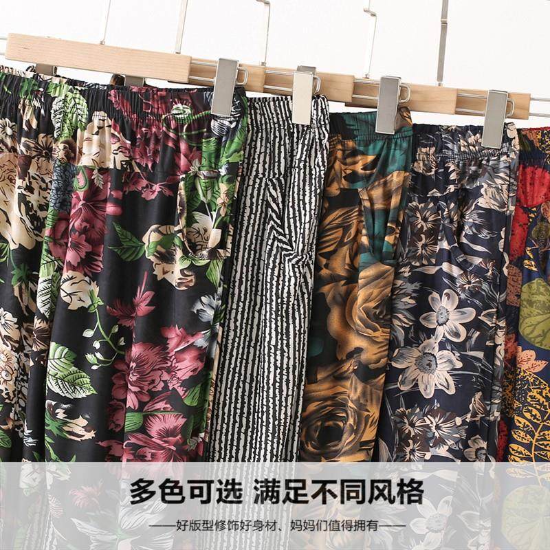 老太太奶奶冰丝九分裤七分女灯笼五分裤花裤子中老年妈妈夏薄高弹