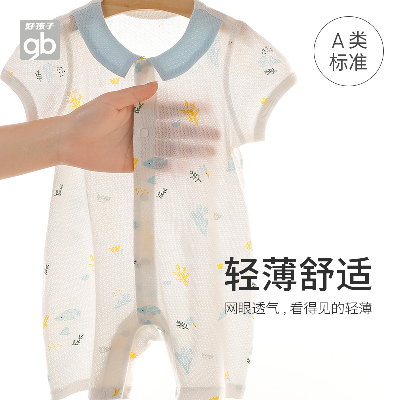 gb好孩子新生儿婴儿衣服夏装连体衣纯棉薄款宝宝短袖外出哈衣爬服