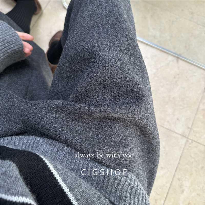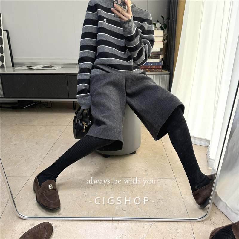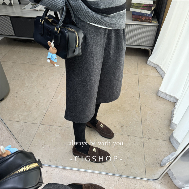 宽松阔腿率性羊毛呢七分裤女直筒加厚秋冬7分中裤显瘦休闲裤子