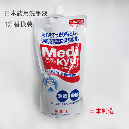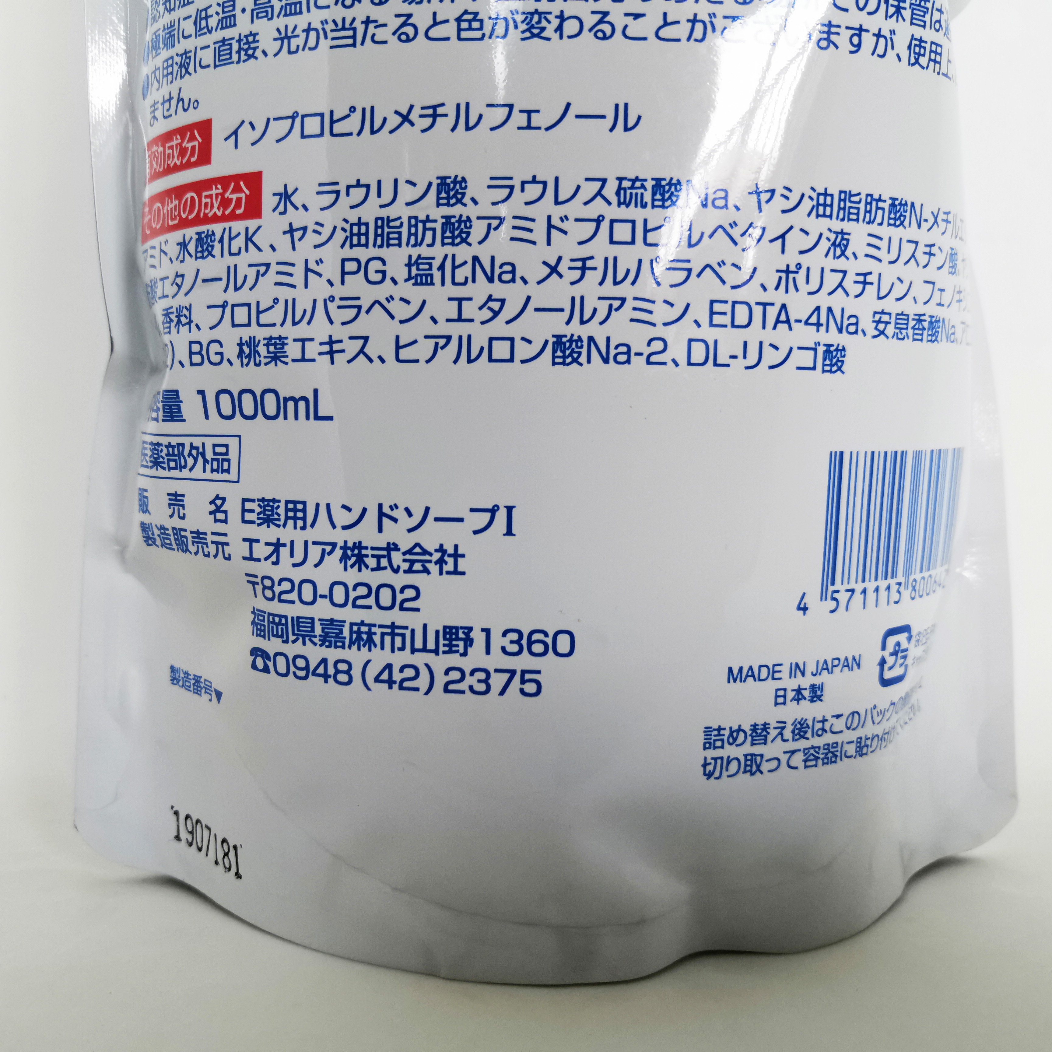 日本进口EORIA 洗手液1L 替换装药用消毒微香型 补充装植物洁净