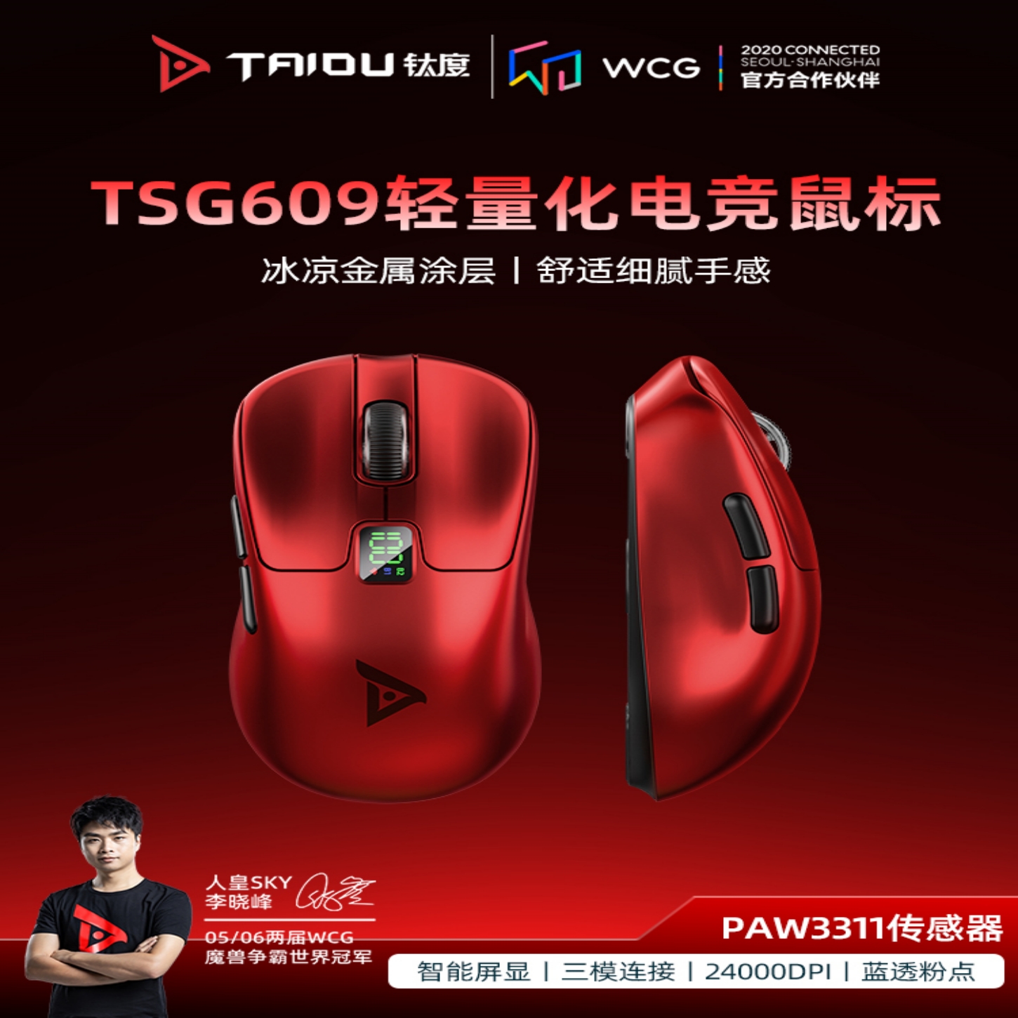 钛度TSG609无相握数字智显三模鼠标无线轻量化机械电竞游戏宏电脑