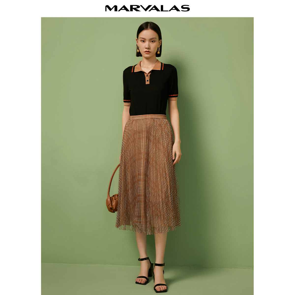曼德诗中长款半身裙优雅