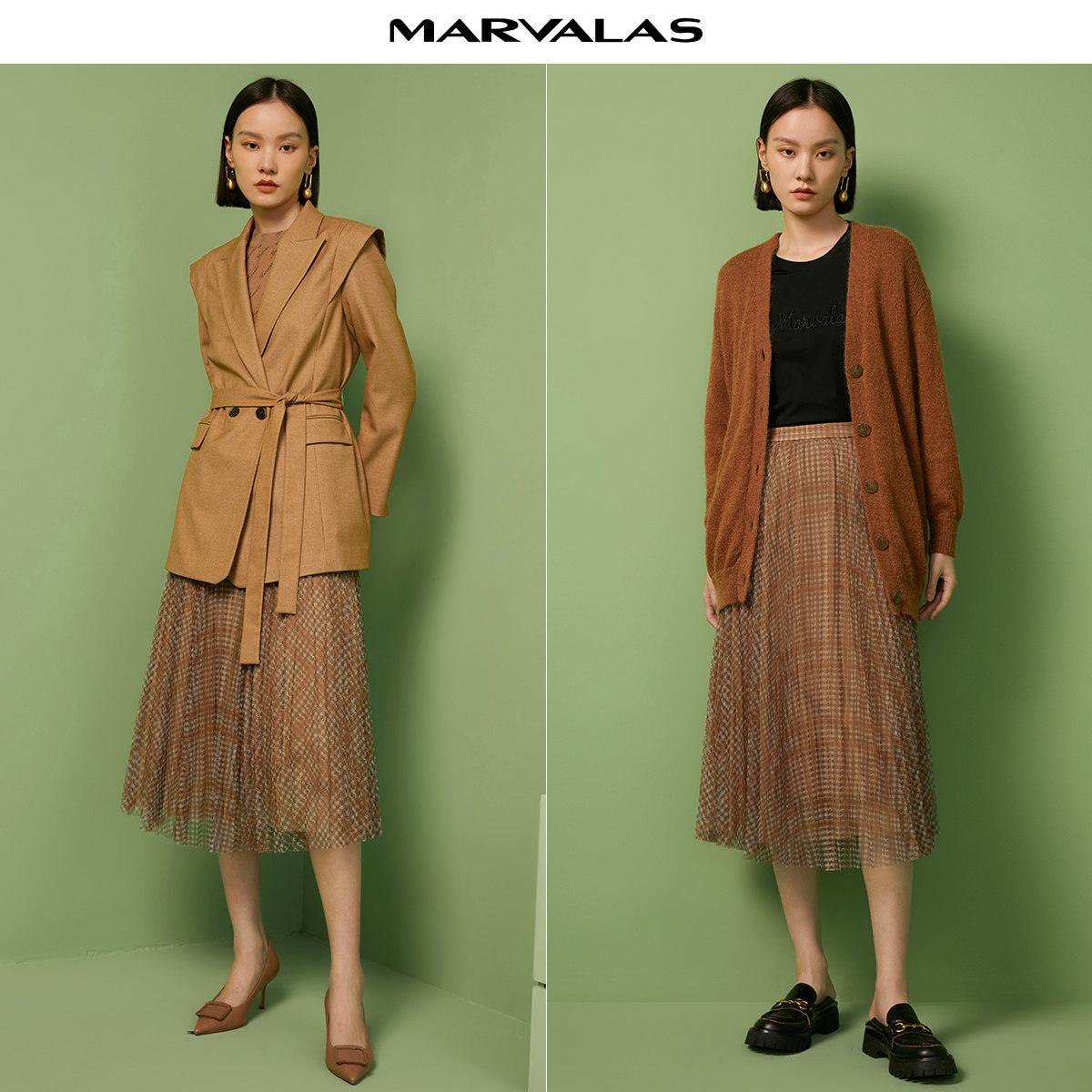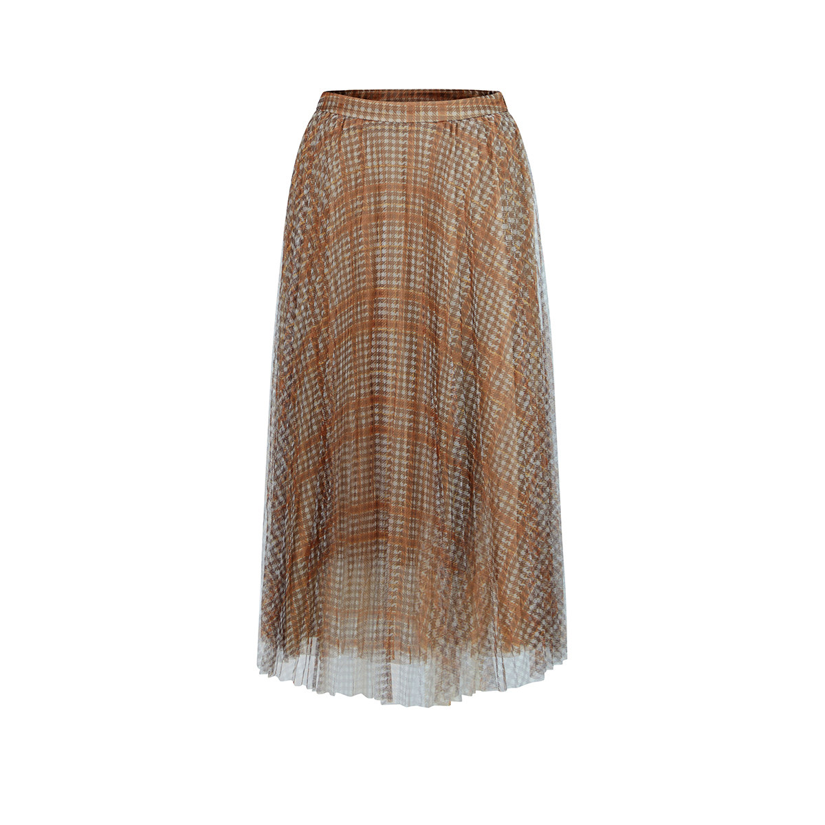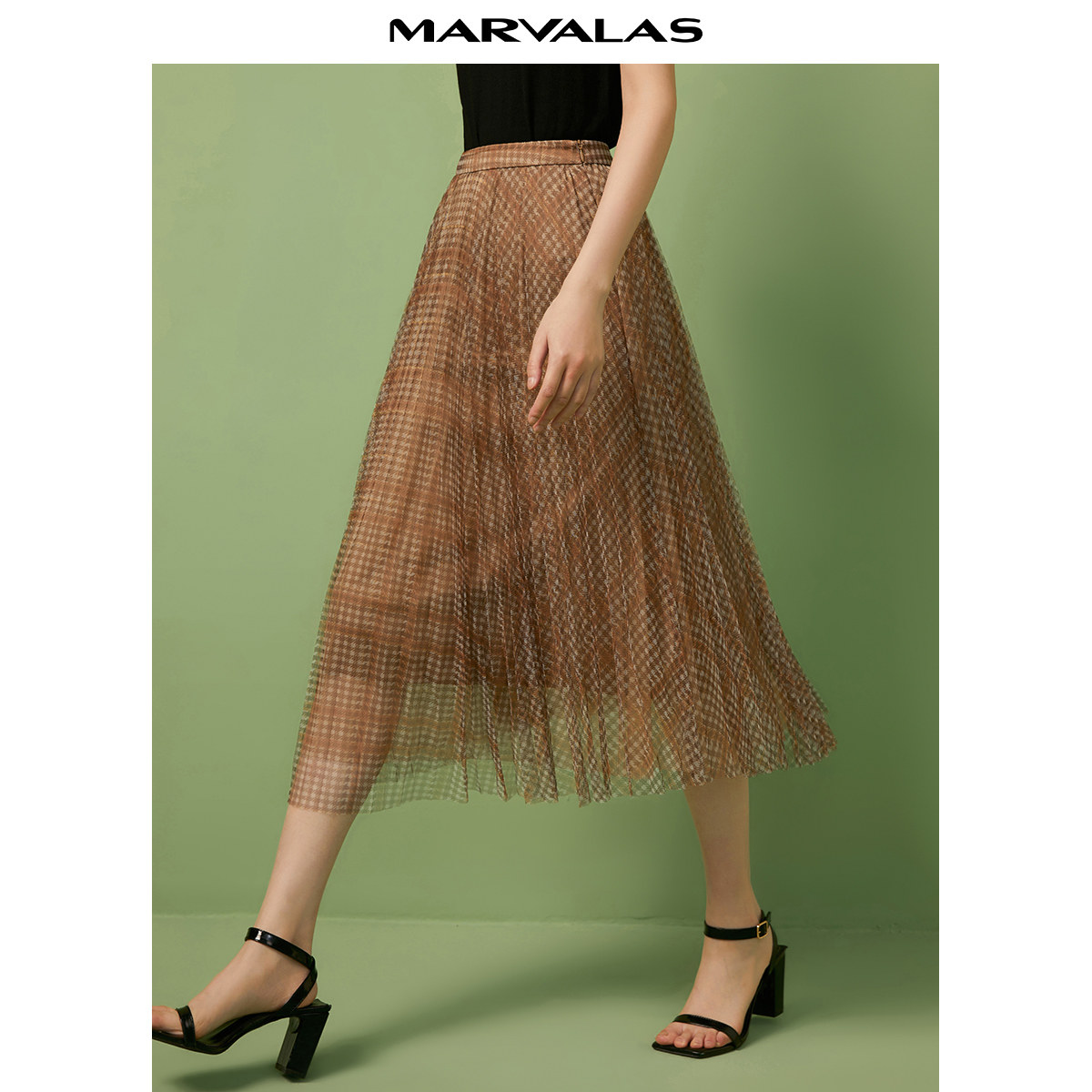 曼德诗纱裙女2025冬季新款格纹百褶半身裙雪纺中长款裙子a字裙