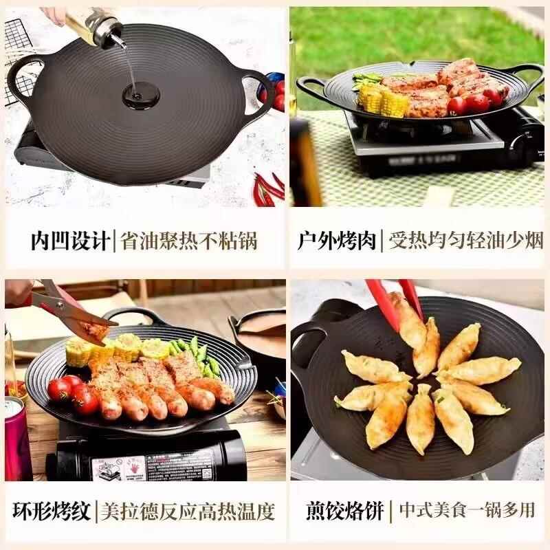铸铁烤盘户外露营烧烤盘韩式烤肉盘铁板烧家用烤肉锅烤盘电磁炉