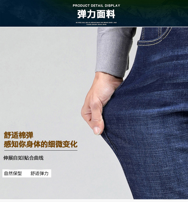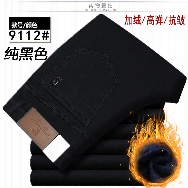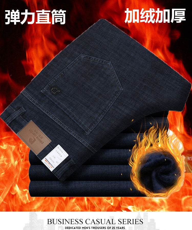 皮尔卡丹加绒加厚牛仔裤秋冬季弹力中年直筒休闲男裤男士保暖长裤
