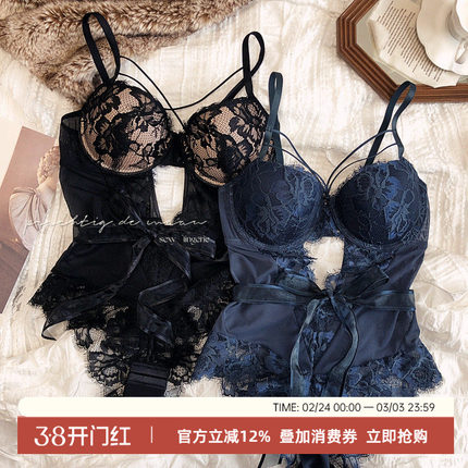 法式性感蕾丝连体内衣聚拢收副乳调整型防下垂文胸套装显瘦塑身
