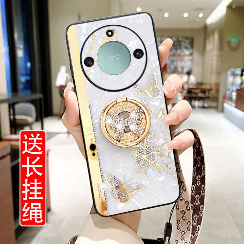 适用华为荣耀x40手机壳新款蝴蝶闪钻X40GT支架防摔套honor镜头全包X40硅胶外壳por潮网红女5g奢华挂脖网红款