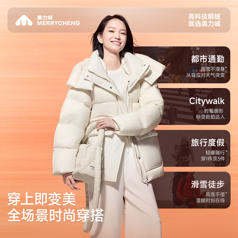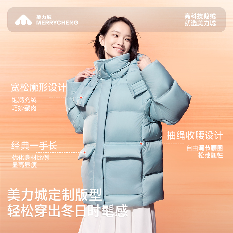 美力城羽绒服女2025冬季新款鹅绒抗静电防水中长款立领外套017
