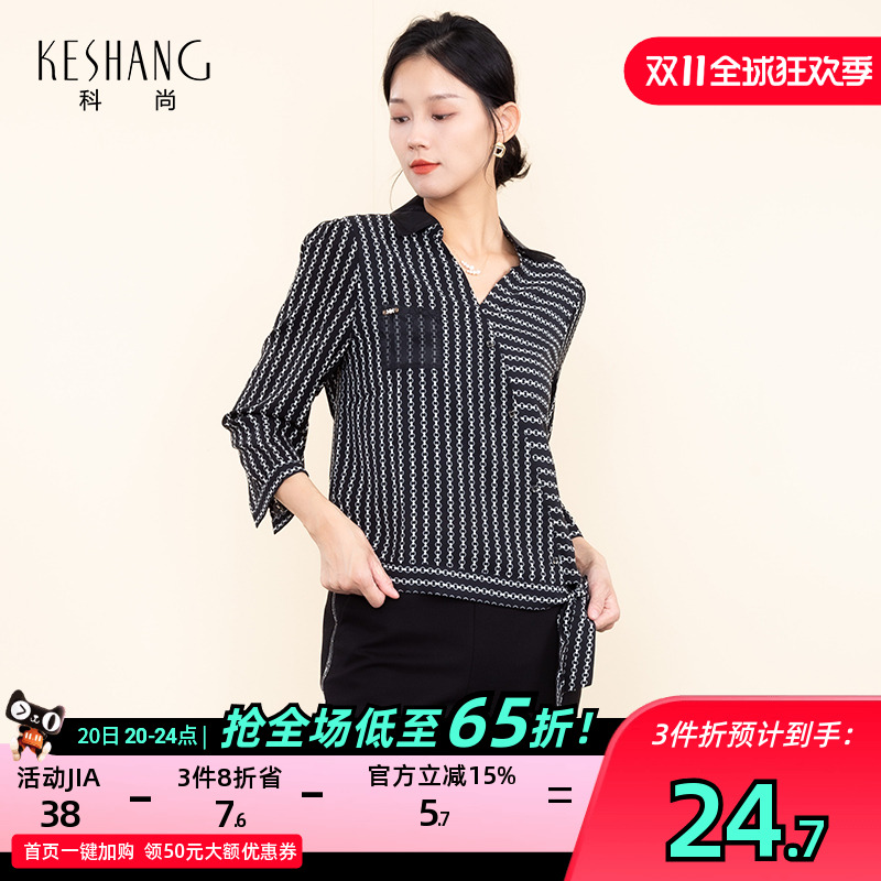 科尚条纹衬衫女2025春季新款长袖百搭印花上衣宽松显瘦竖条纹衬衣