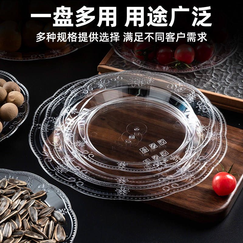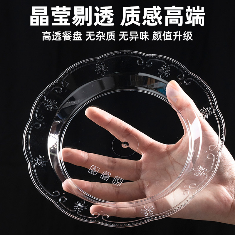 一次性盘子航空水晶塑料高档硬质户外烧烤盘家用水果盘菜盘蛋糕盘