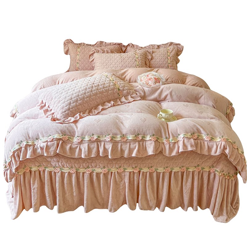 少女公主风加厚床盖牛奶绒四件套
