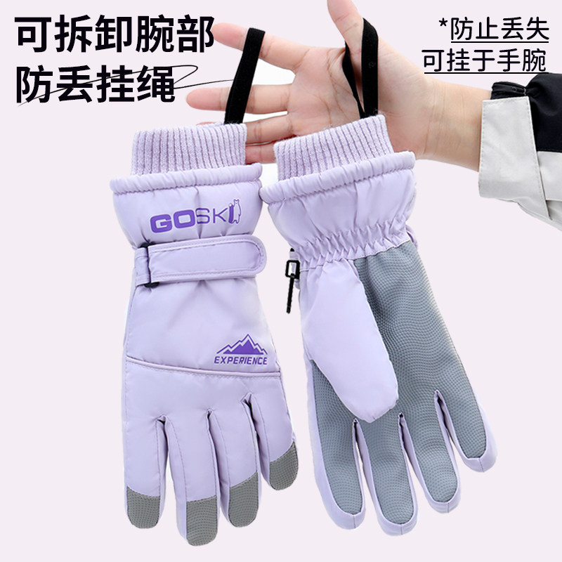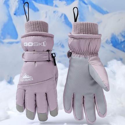 滑雪手套女冬季加厚加绒全掌触屏骑电动车防寒保暖棉防丢扣男士