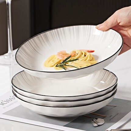 饭盘家用2025新款釉下彩简约陶瓷餐具深盘菜盘8英寸圆盘方盘双耳