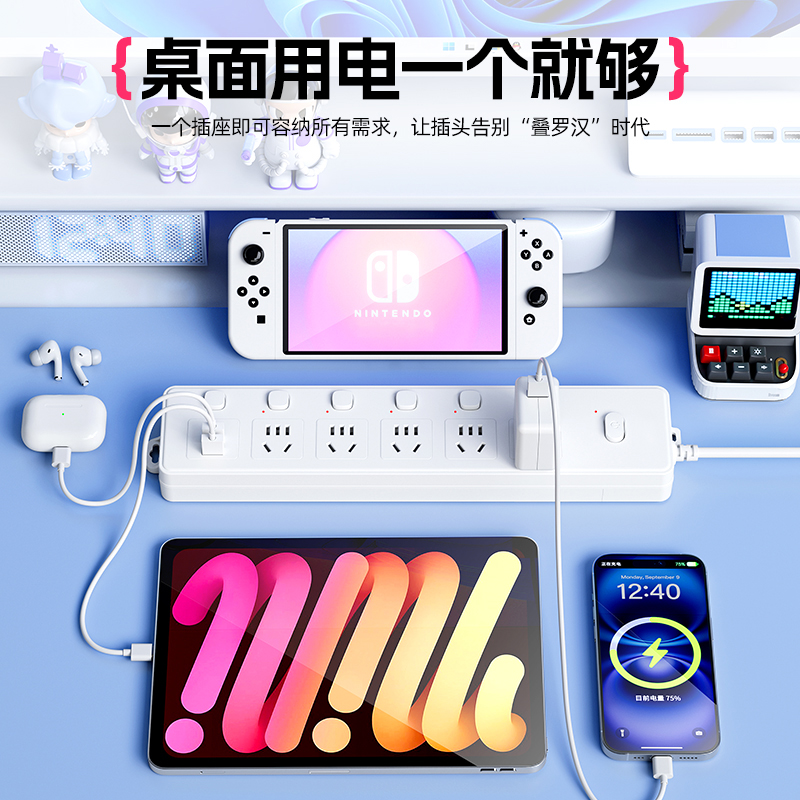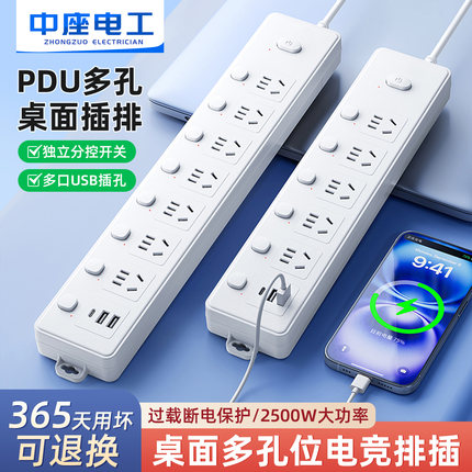 分控插座插排独立开关防过载保护多功能插线板USB接拖线板多插位