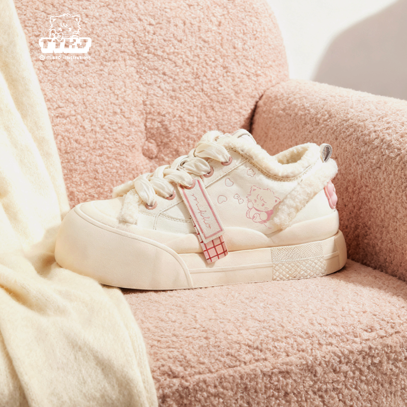 TTKJ厚底女鞋小白鞋秋冬新款mikko联名休闲运动增高白色加绒板鞋