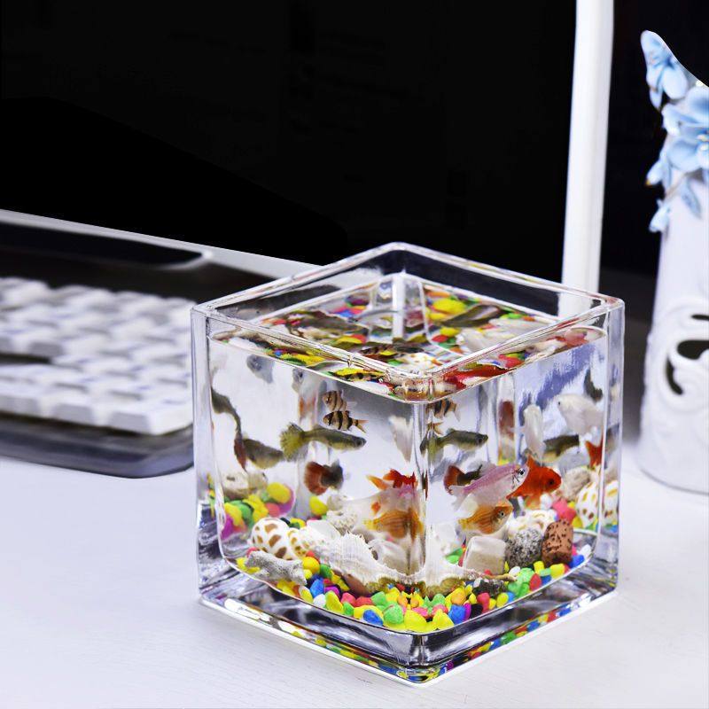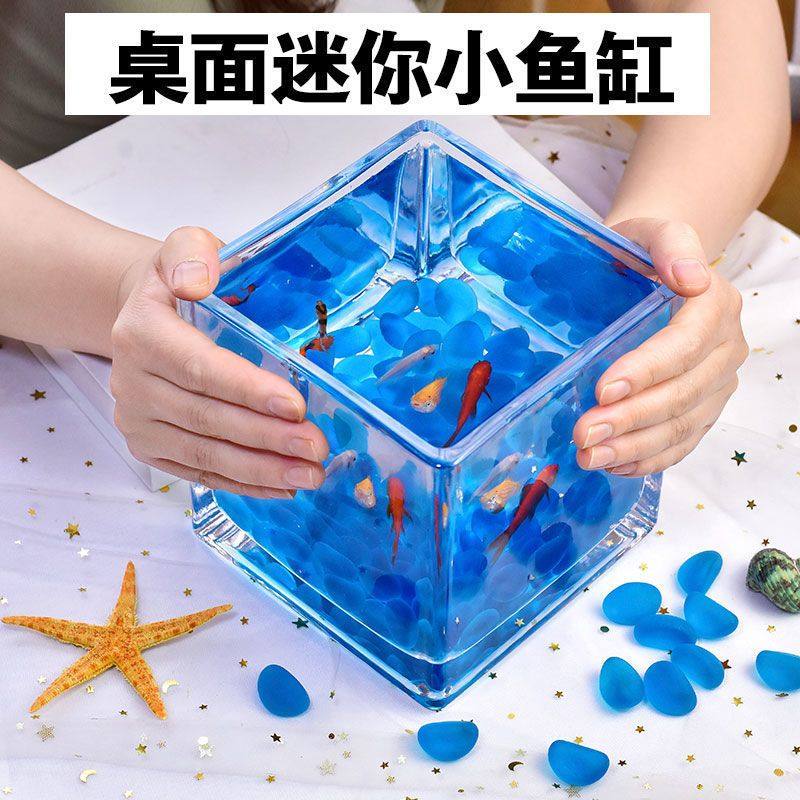 玻璃鱼缸方形小造景创意简约水培金鱼缸家用办公桌斗小型