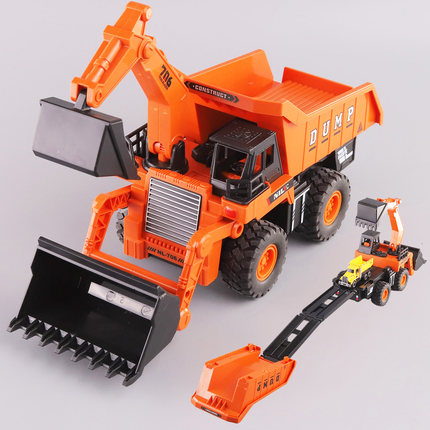 大号惯性弹射轨道工程车双模式变形卡车儿童折叠挖掘机运输玩具车