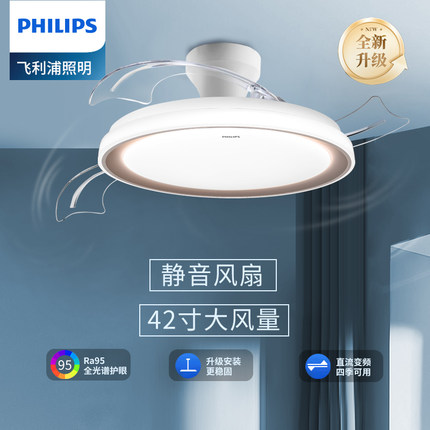 飞利浦风扇灯吊扇灯隐形一体家用客厅卧室静音餐厅带灯电扇的吊灯