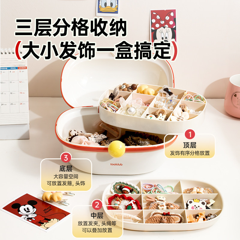 可爱儿童发饰收纳盒三层大容量首饰盒女孩女童发箍发绳发夹整理盒