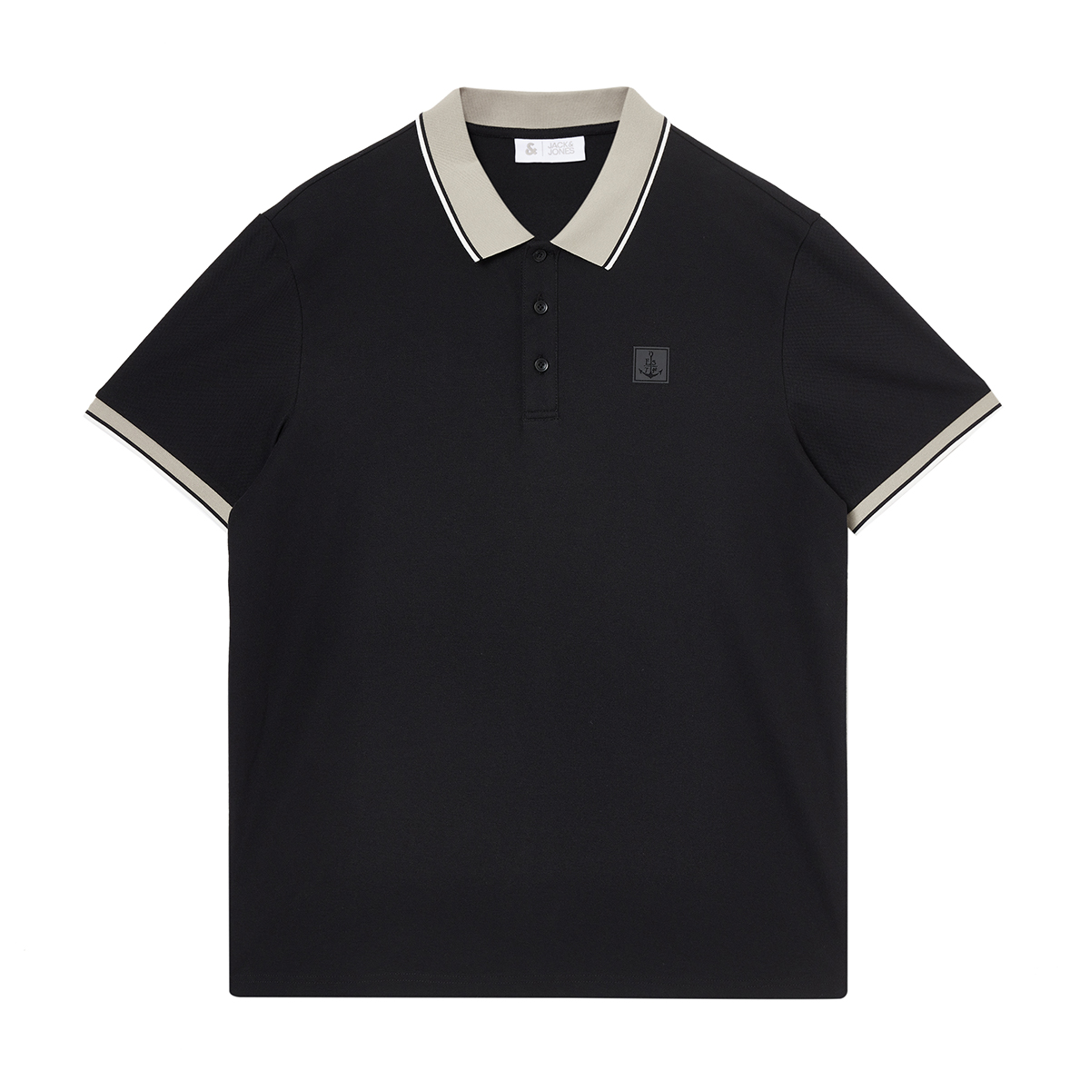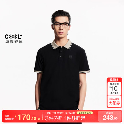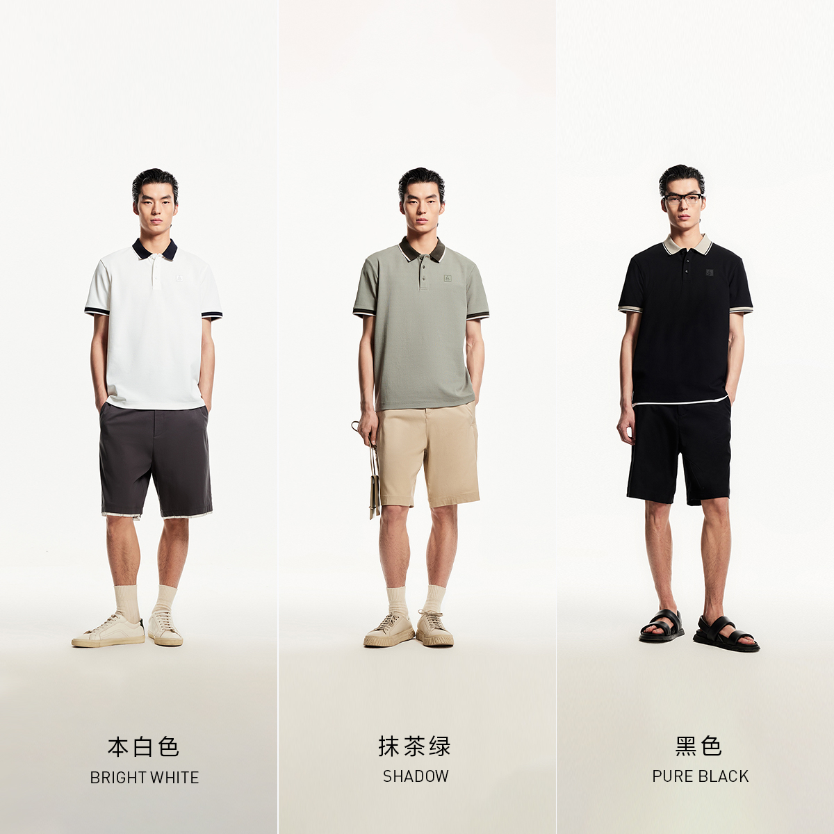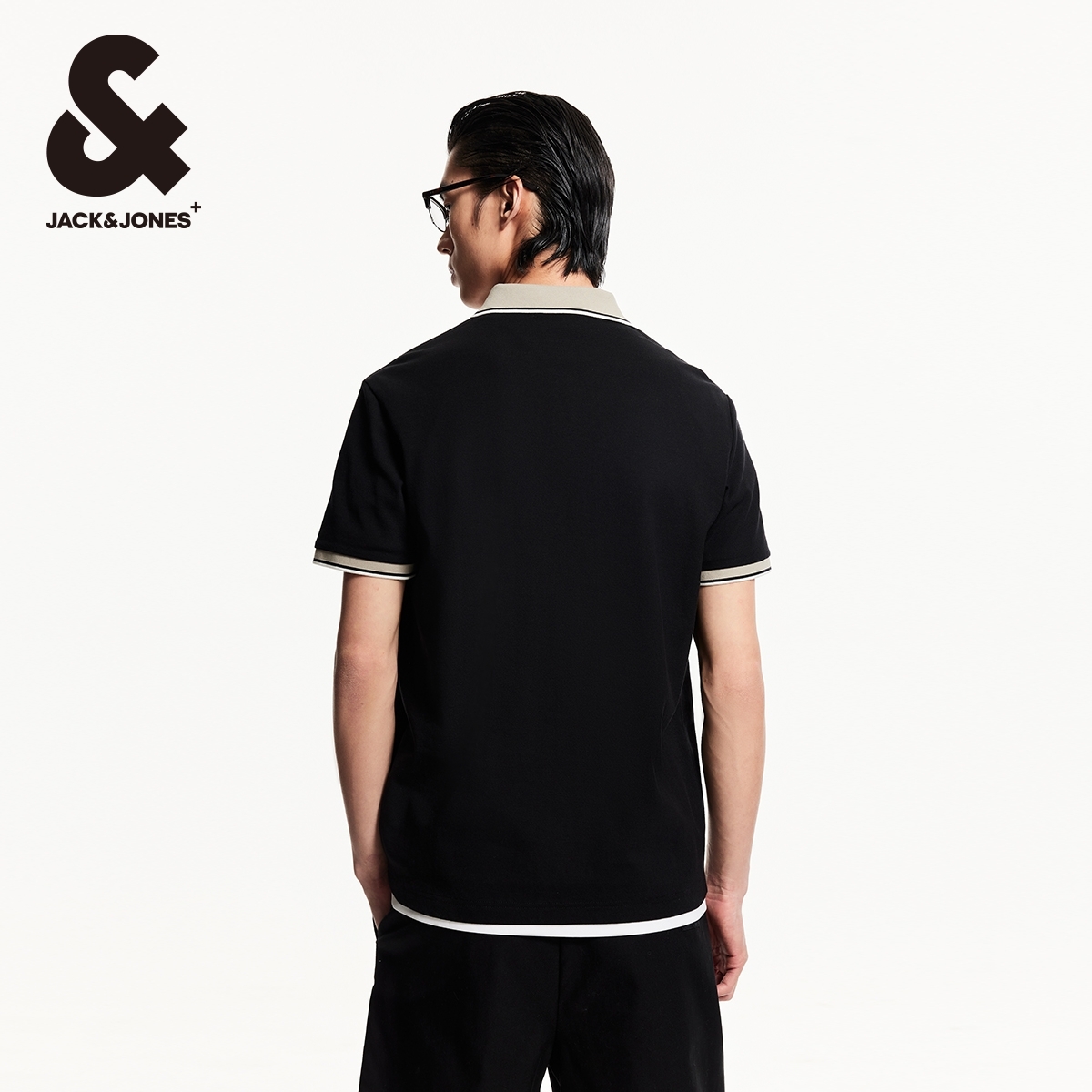 jq区绫致杰克琼斯2025夏季图案条纹拼色商务休闲常规翻领短袖T恤