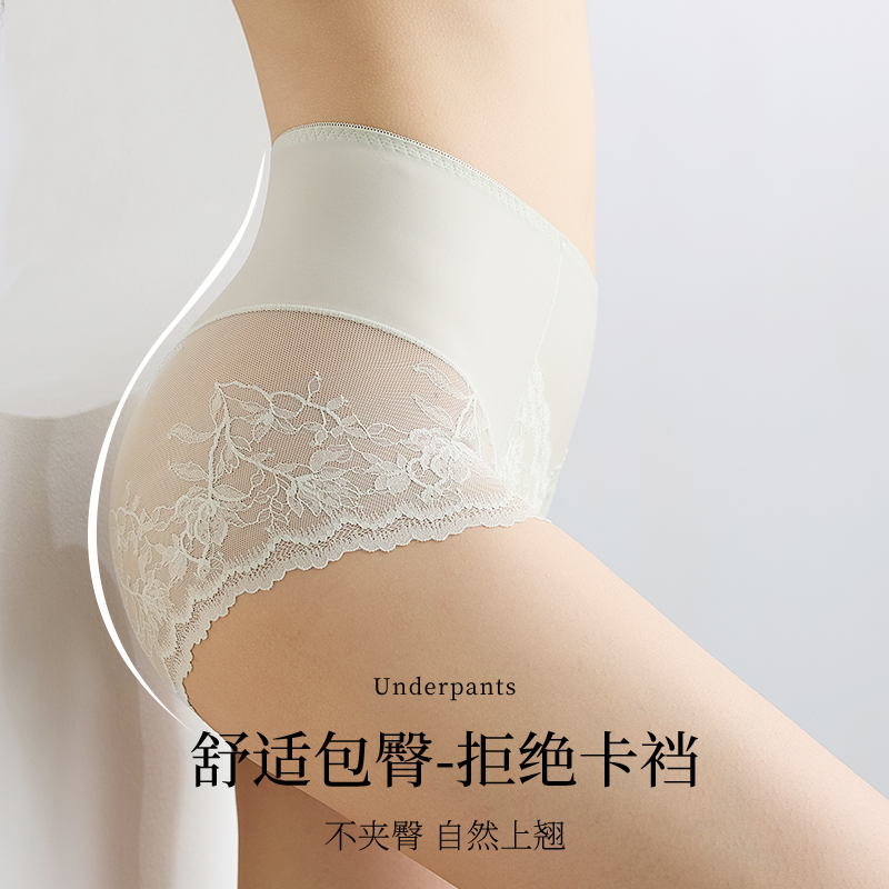 夏谷奈蕾丝内裤女2025新款性感高腰无痕包臀桑蚕丝抗菌透气三角裤