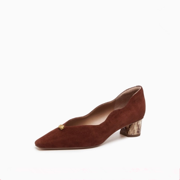 同款点金石2025新款羊皮波浪曲线气质通勤不累脚粗跟单鞋女Y1P09