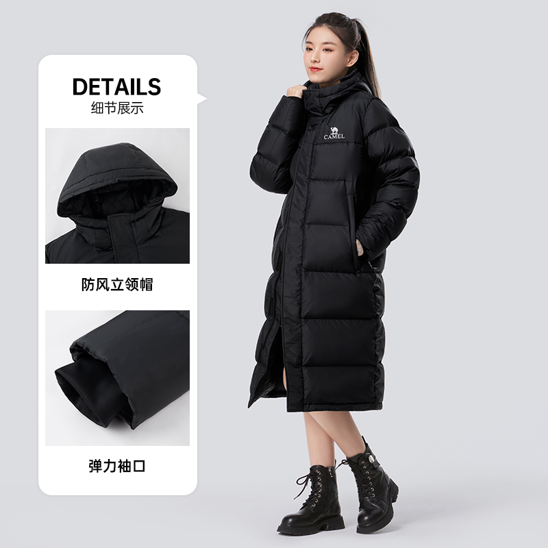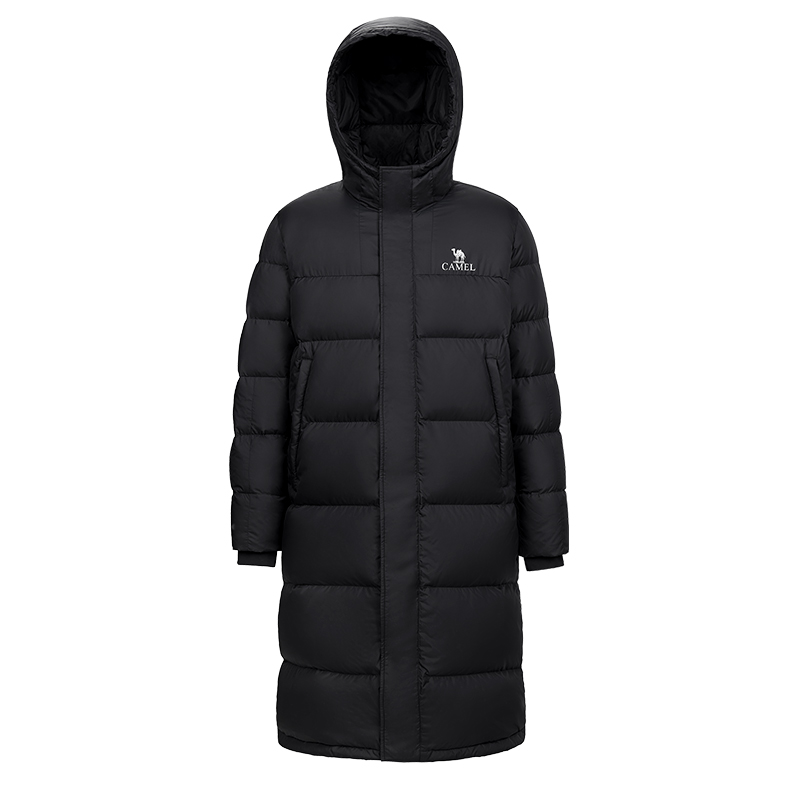 骆驼男装长款过膝羽绒服男冬季户外加厚保暖防风白鸭绒连帽外套