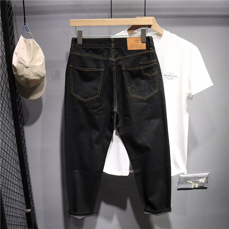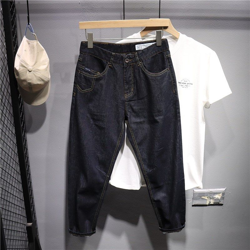 毒类水洗深色小脚九分牛仔裤春夏薄款男士直筒宽松休闲春秋裤子男