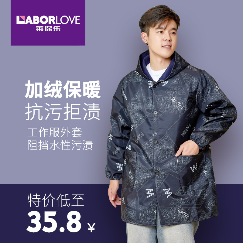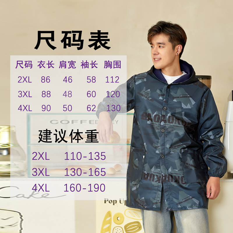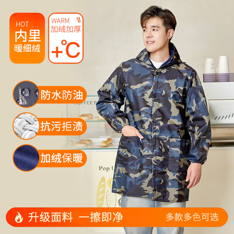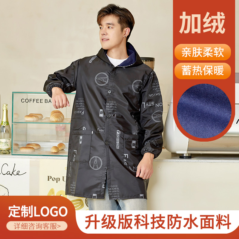 加绒加厚罩衣男厨房防水防油工作服大人定制logo围裙长袖新款冬季