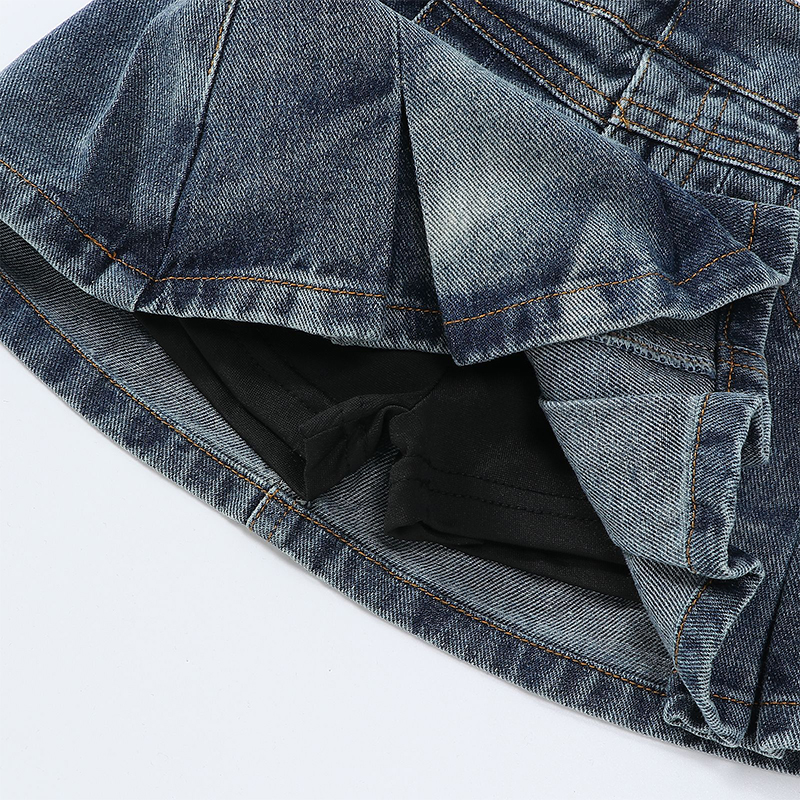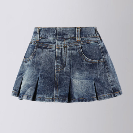 女童半身裙美式复古牛仔百褶裙