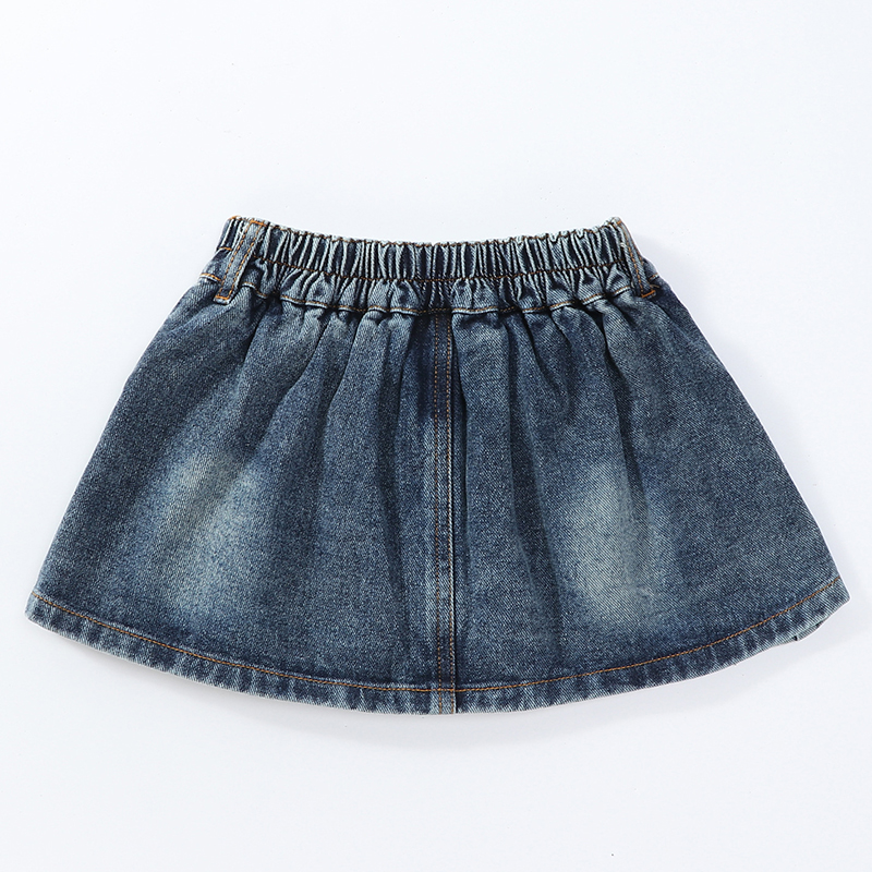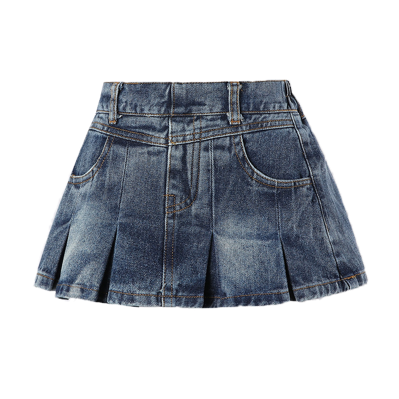 儿童牛仔半身裙高腰防走光短裙中大童春秋水洗裤裙女童复古百褶裙
