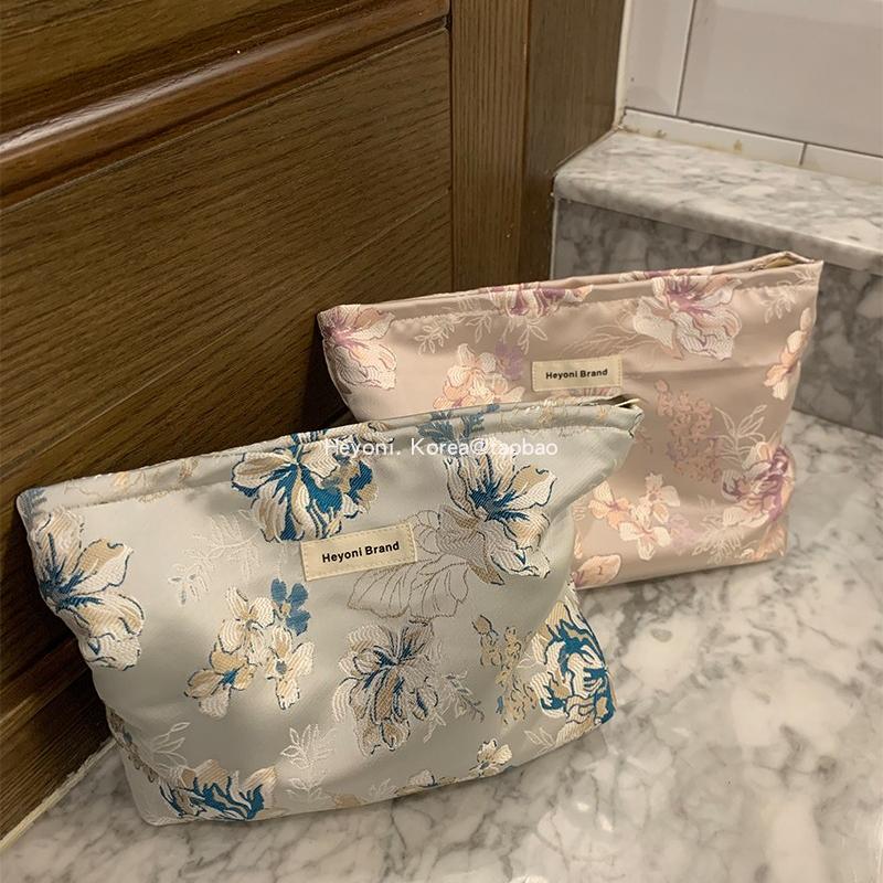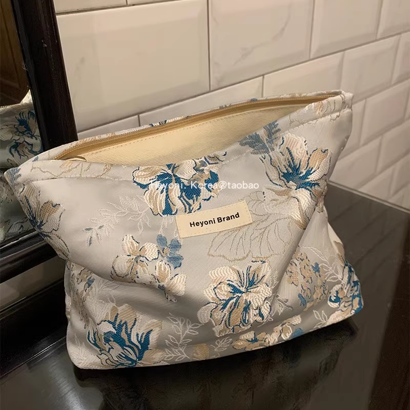 HEYONI兰亭序新中式提花化妆包缎面高级大容量洗漱收纳袋便携