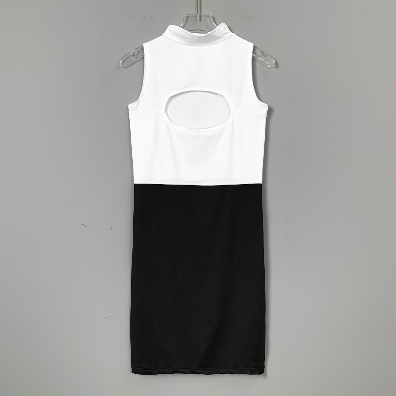 韩国东大门新款夏修身性感气质半高领显胸大撞色包臀无袖连衣裙女